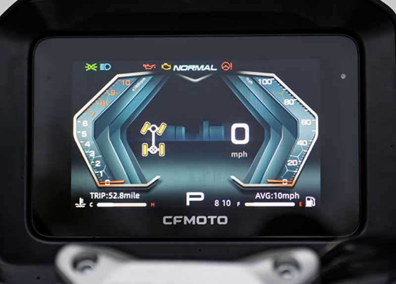 O novo motor CFMOTO de 963cc, com 86cv, utiliza tecnologia ride-by-wire para uma aceleração suave e precisa.